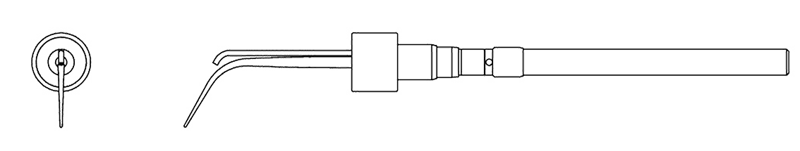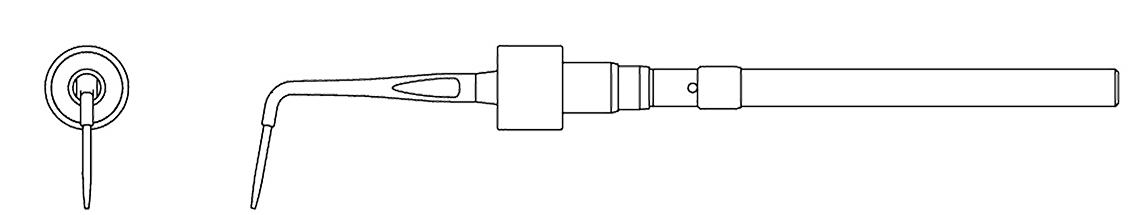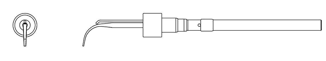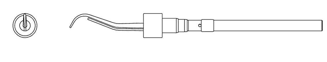To provide excellent furcation access in the 1st and 3rd quadrants, detect periodontal pocket, and accomplish root planing. To be used only after gross debridement with periapical tip.
