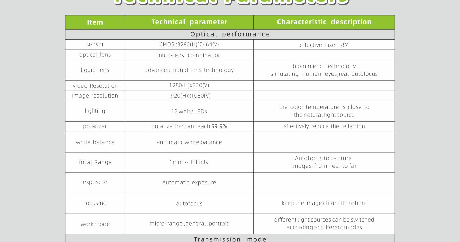 Fast zoom: based on zoom technology of simulating human’s eyes to realize fast zoom, Focus Time<0.3S.