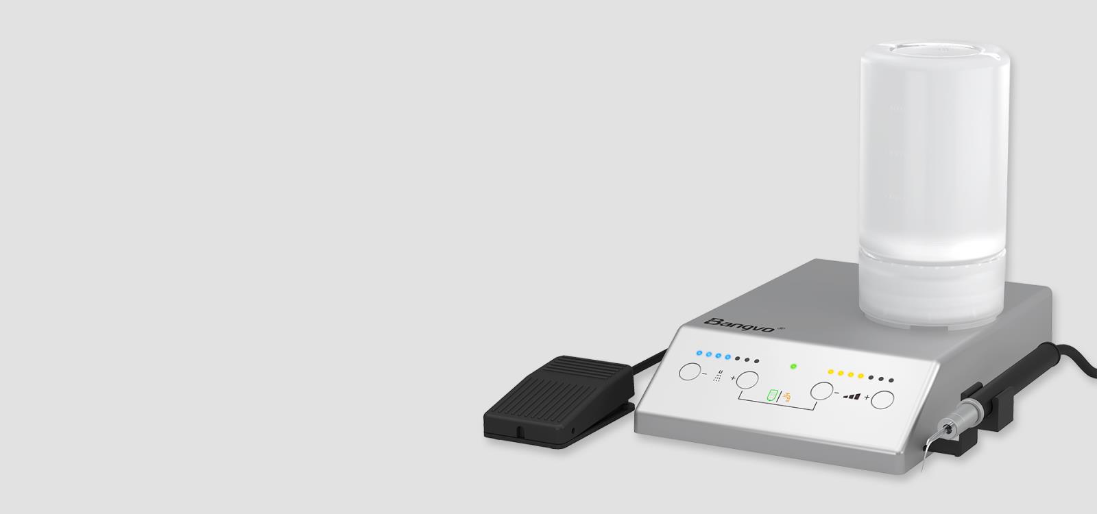 BANGVO S1/L1 has been designed to facilitate treatment even in areas where your vision is obscured. The scaler instruments are long and thin, allowing you to access furcations and even the deepest periodontal pockets. To provide perfect calculus removal capabilities, especially subgingivally, the instrument oscillates circularly and is active 360 degrees around its tip. You can supply antimicrobial solution using a peristaltic pump installed on your BANGVO unit or integrated into the stand-alone model.